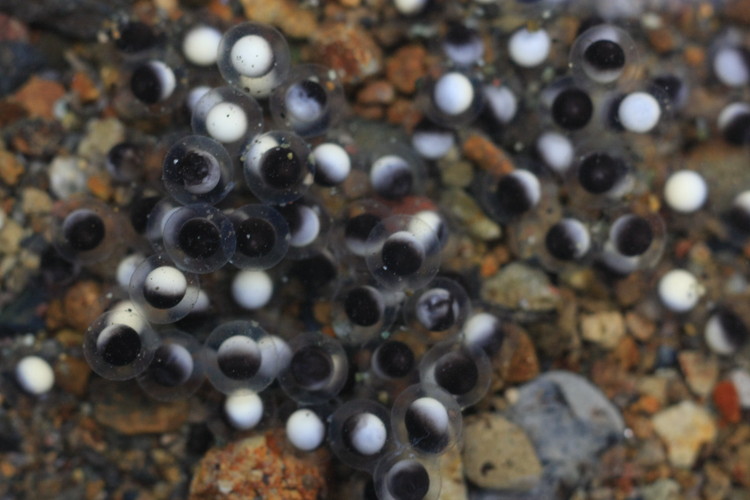 このあたりだと、冬だか3月ころに産卵だったかと記憶していますが、孵化して海にいって成長し帰ってくる両側回遊性のカジカ(小卵型)と…